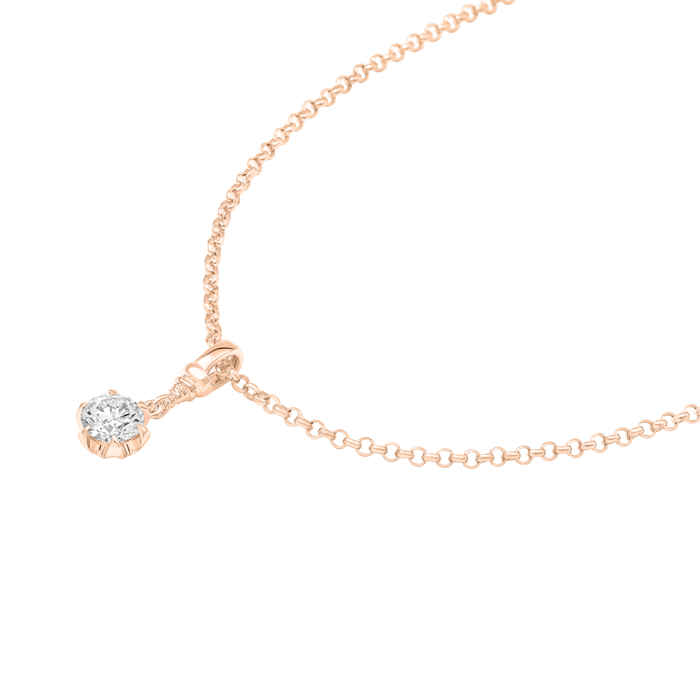 Round Diamond Pendant set in our Buttercup setting. The pendant length is 0.80 inches. The French Cable Chain is 18 inches long.